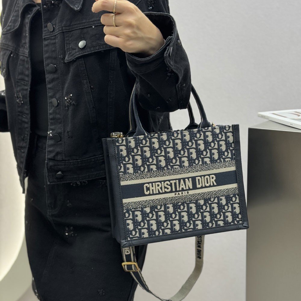 디올 오블리크 북 토트 레더 백 스몰 블루