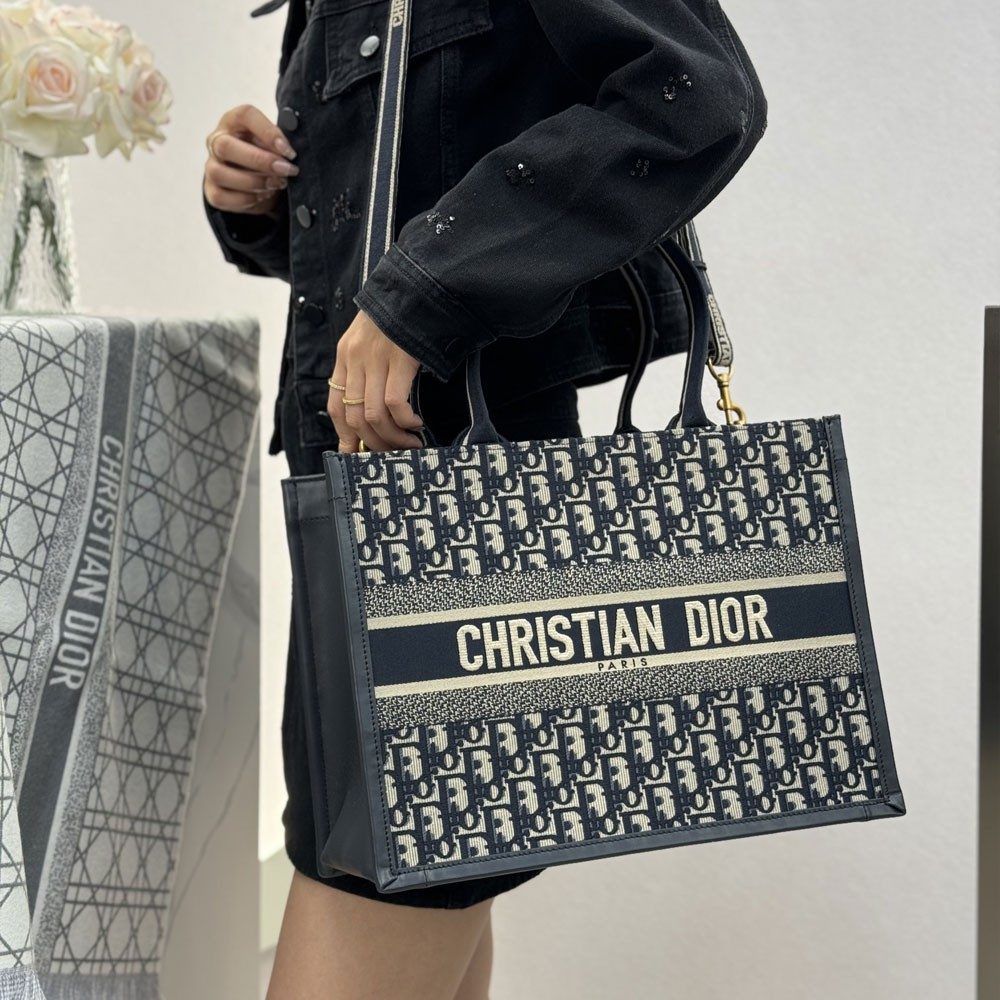디올 오블리크 북 토트 레더 백 미듐 블루