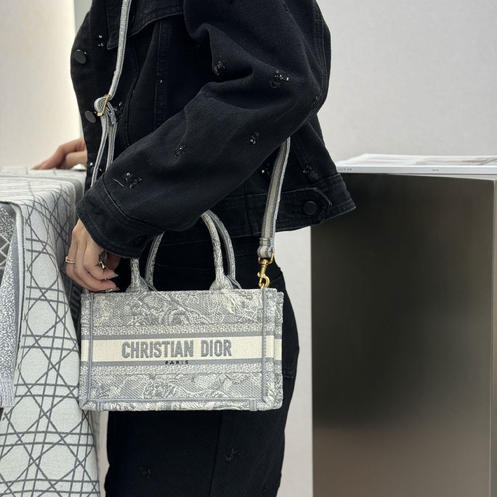 디올 북 토트 스트랩 백 미니 뜨왈 드 주이 리버스 그레이