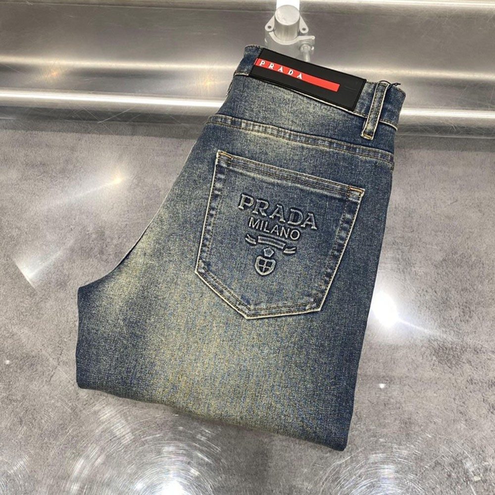 프라다 24FW 자수로고 레드 라벨 데님 팬츠 - 메이저시간