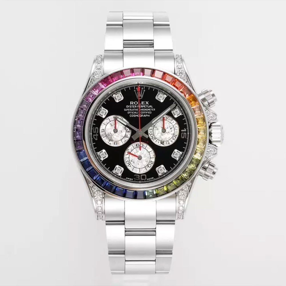 롤렉스 데이토나 크로노그래프 검판 다이얼 8P다이아 레인보우 베젤 40mm 116599