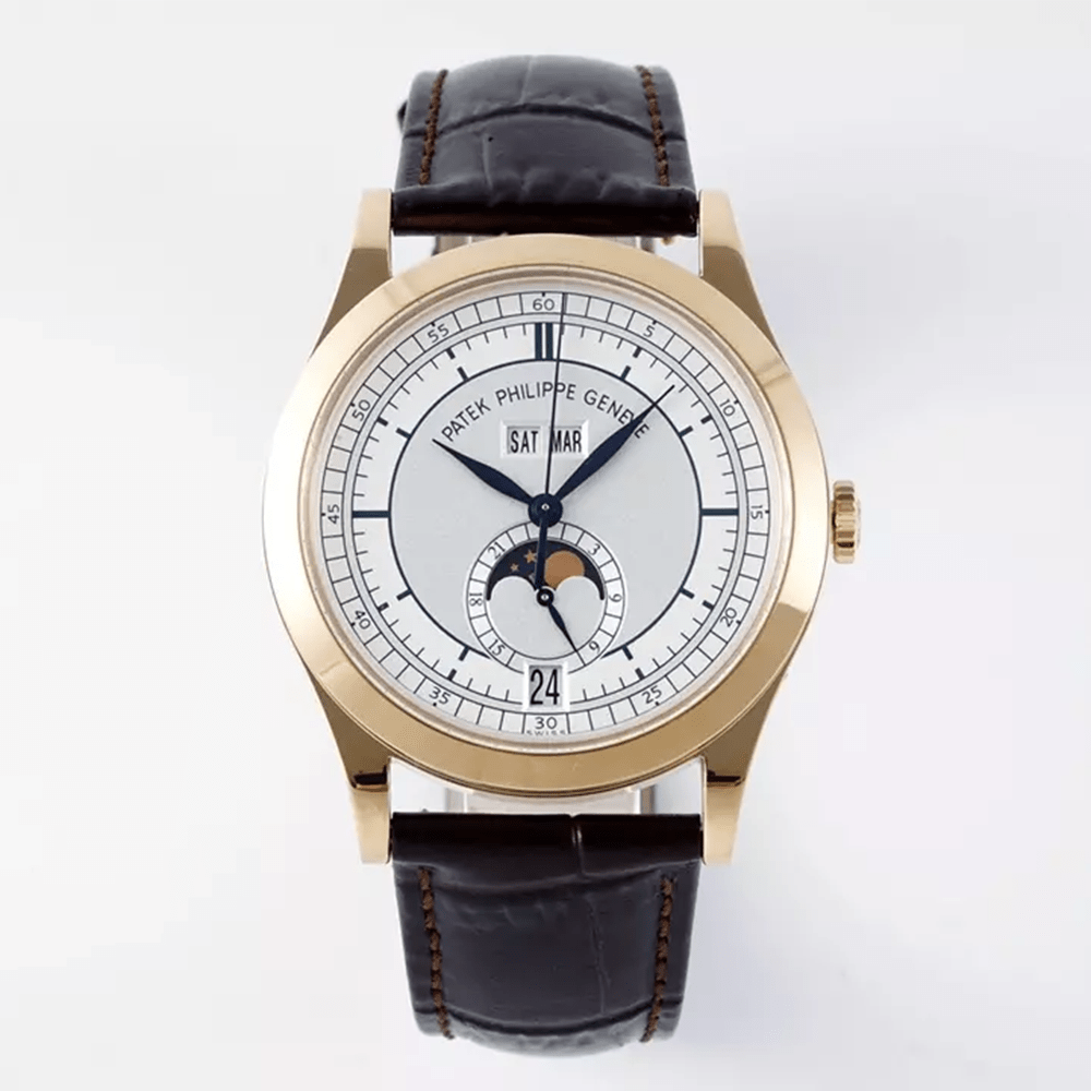 파텍필립 문페이즈 컴플리케이션 애뉴얼 캘린더 화이트 다이얼 로즈골드 가죽 스트랩 5396