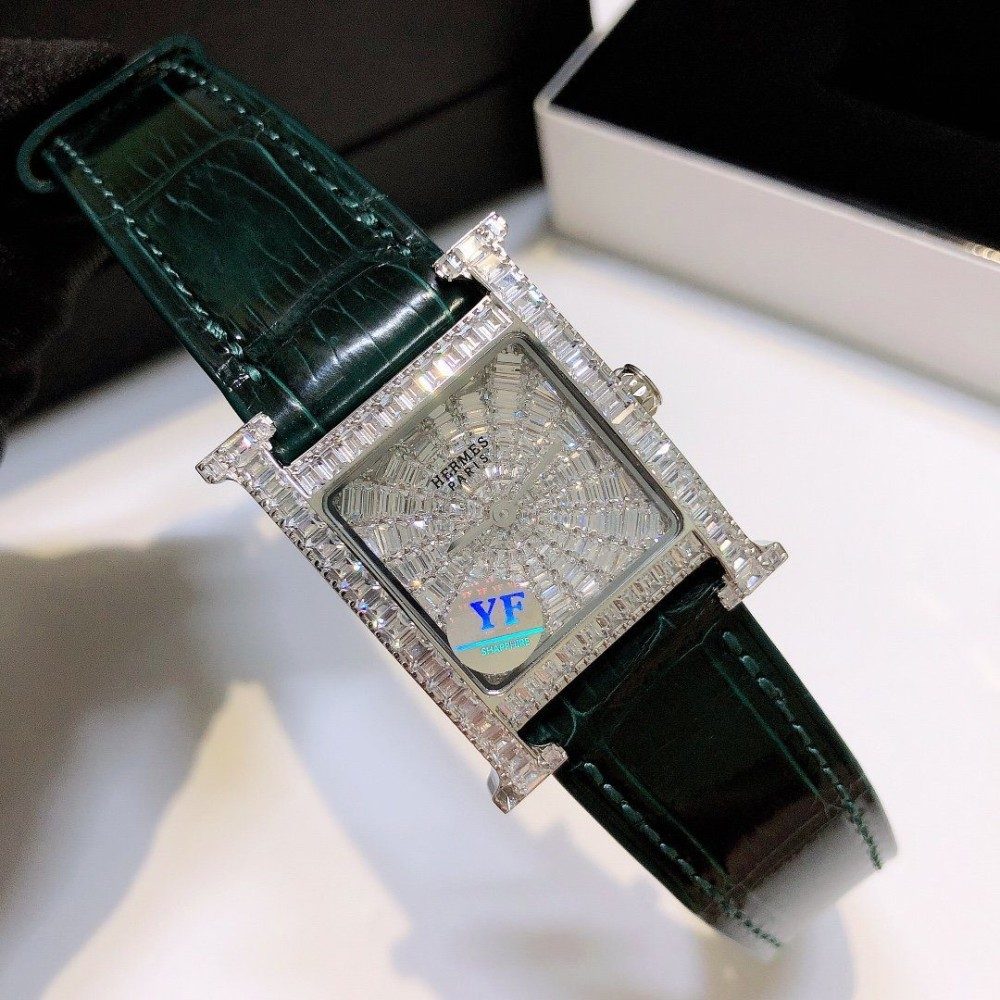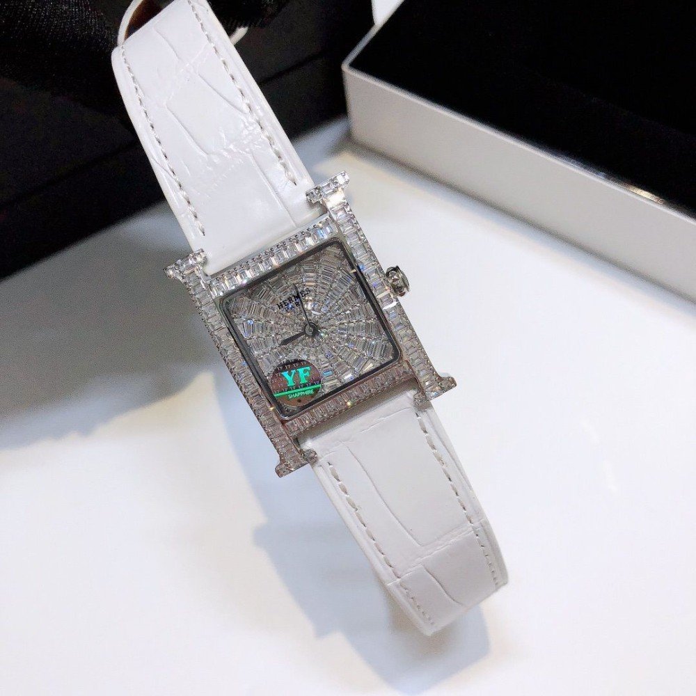 에르메스 H HOUR 시리즈 여성용 벨트시계[풀 다이아몬드] 레더 스트랩 26mm