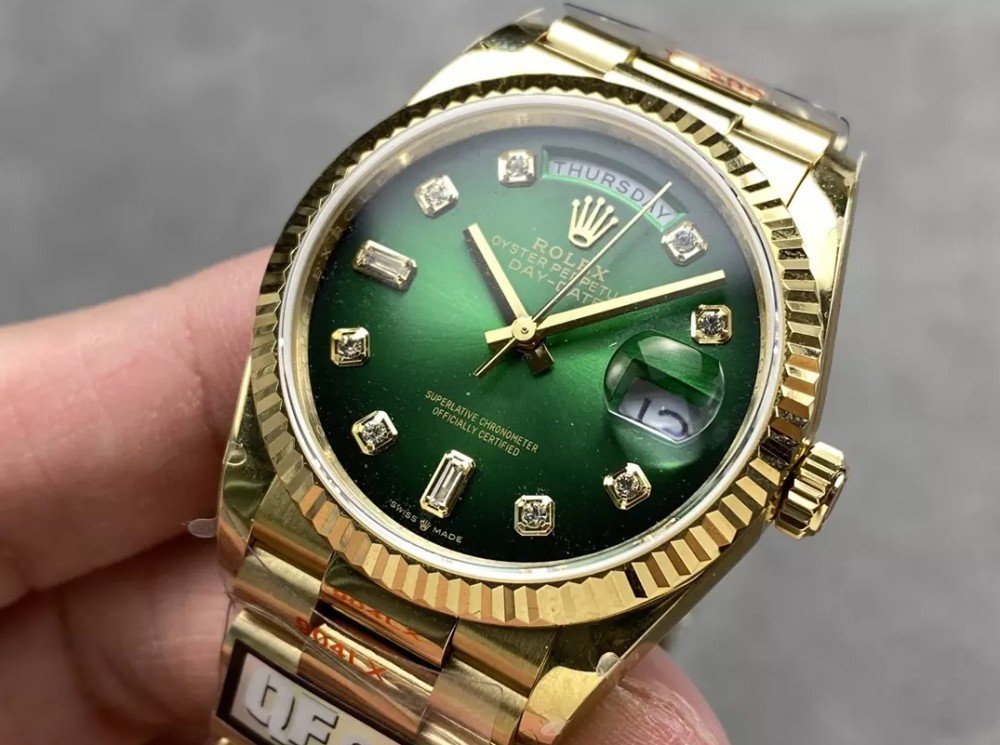 v5 롤렉스 데이데이트 그린 옴브레 다이얼 10P다이아 옐로우골드 금통 36mm 128238