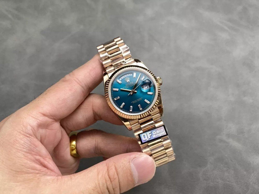 v5 롤렉스 데이데이트 블루 다이얼 바게트다이아 로즈골드 금통 36mm 128235