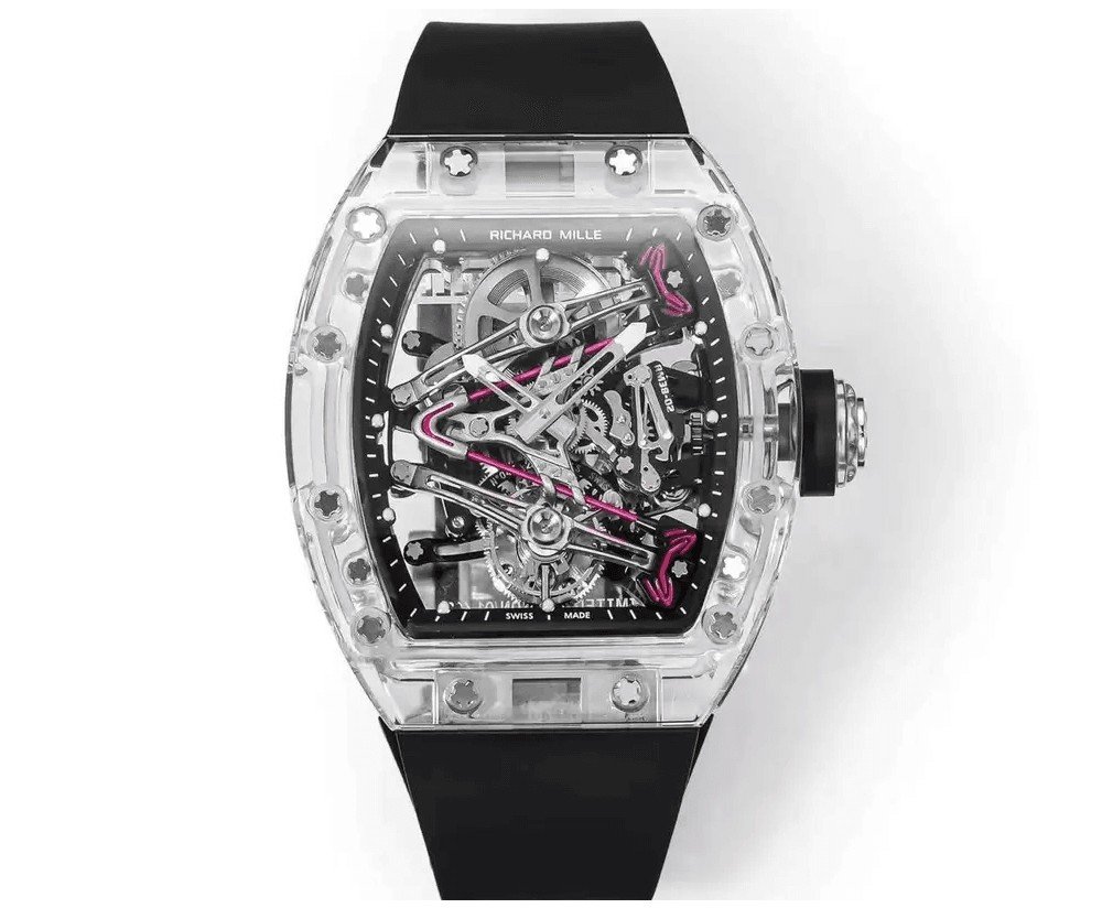 리차드밀 부바왓슨 투명 투르비옹 스켈레톤 다이얼 블랙 러버밴드 RM38-02
