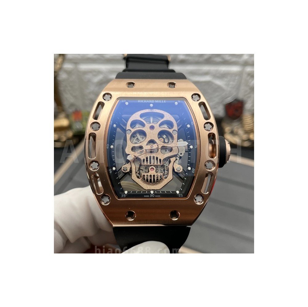 리차드밀 투르비옹 스컬 로즈골드 스켈레톤 다이얼 블랙 러버 스트랩 RM052