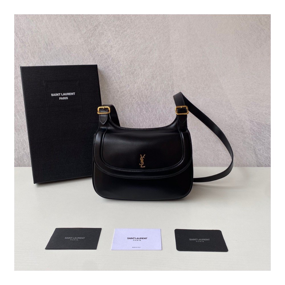 생로랑 찰리 미디움 스무스 카프레더 숄더백 블랙