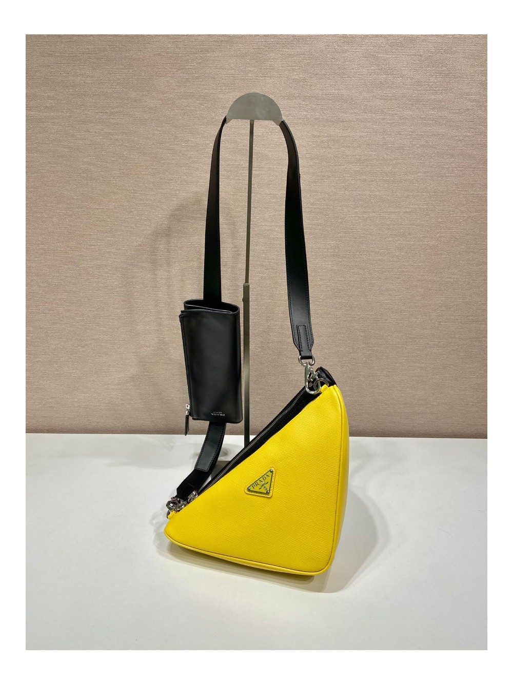 프라다 22FW 트라이앵글 사피아노 레더 디태처블 파우치 더블 숄더백 옐로우