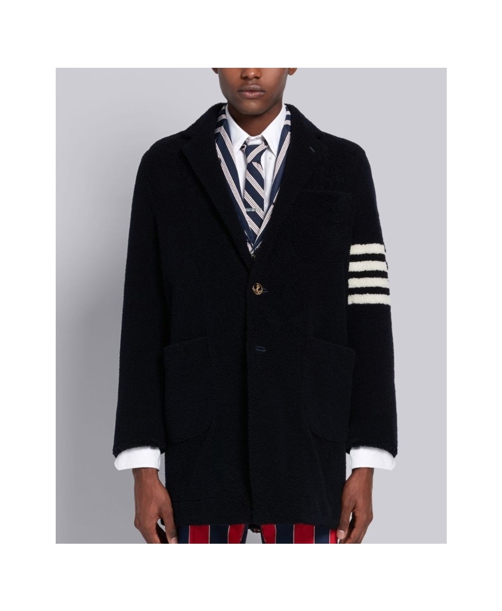 톰브라운 라이트웨이트 시어링 언컨스트럭티드 4-바 오버코트 네이비