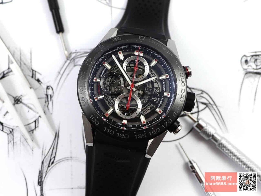 태그호이어 까레라 01 크로노그래프 세라믹 베젤 러버 스트랩 45mm CAR2A1Z.FT6044