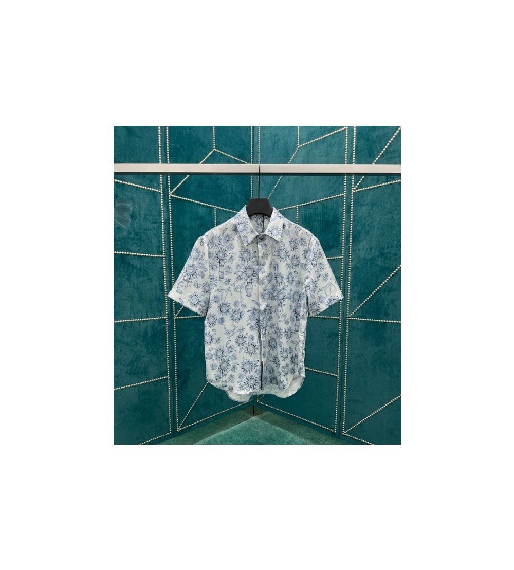 디올 AND HYLTON NEL 반소매 셔츠 라이트 블루 실크 자카드