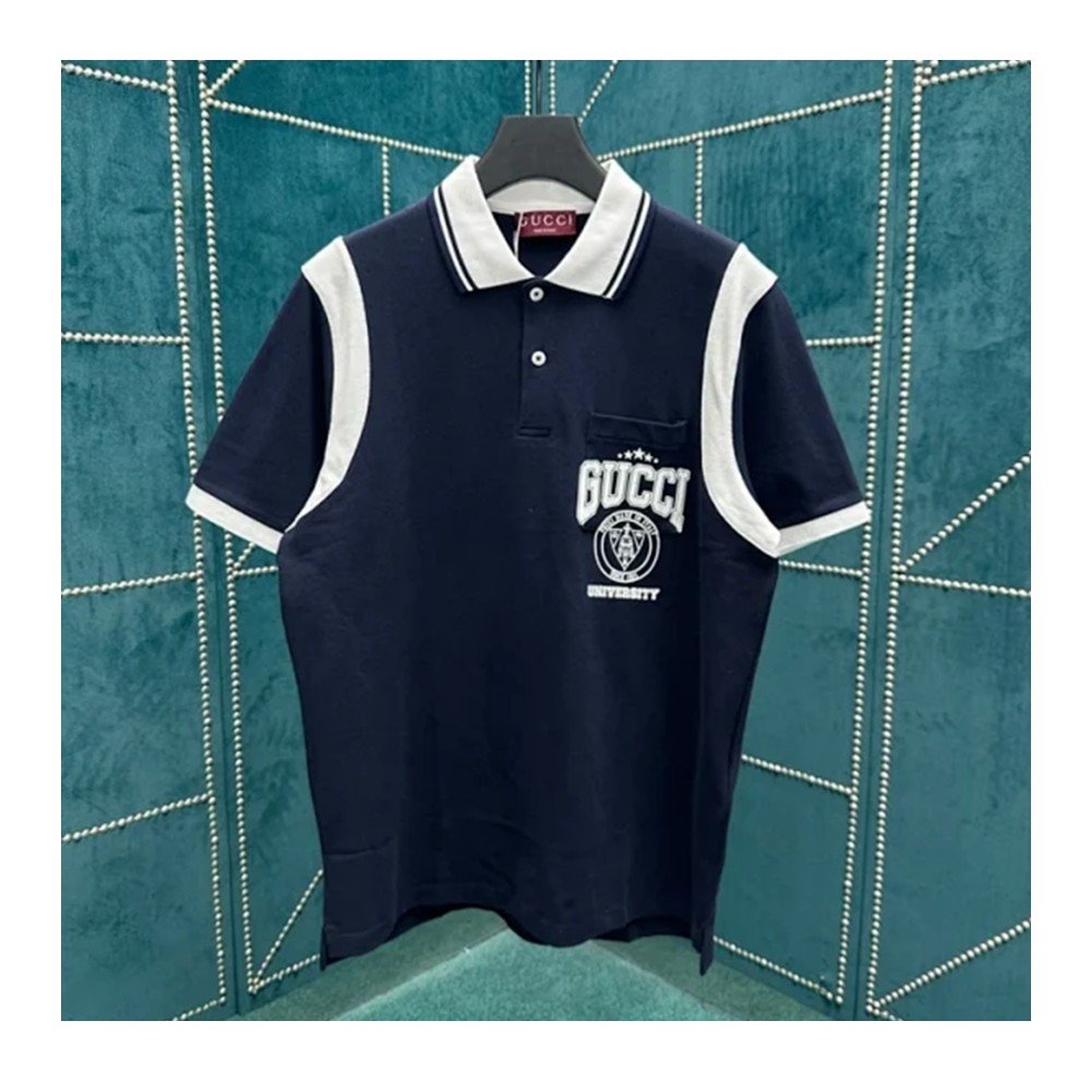 구찌 로고 코튼 피케 폴로 셔츠 네이비 - 메이저시간